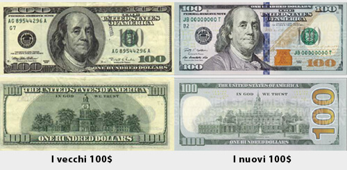 Un caso emblematico è offerto dalla nuova banconota da 100 dollari recentemente messa in circolazione negli Stati Uniti. Dopo quasi vent’anni di sviluppo e diversi problemi, i pezzi da 100 hanno fatto il loro debutto lo scroso 8 ottobre, portandosi appresso una nuova gamma di sistemi di sicurezza con l’obbiettivo di stare alla pari con le altre valute globali come l’euro. Questo lancio rappresenta il culmine del processo di ridisegno totale avviato dal BEP (Bureau of Engraving and Printing) nel 2003 con le banconote da 20 dollari e accresciuto a ogni passo da nuova grafica, colori e misure di sicurezza.